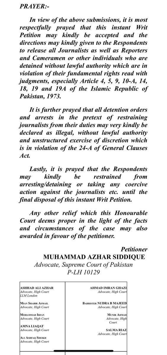 President Lahore Press Club Azam Chaudhry filed the application through Azhar Siddique Advocate