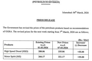 OGRA is the short word used for OIL and GAS Regulatory authority. Their duty is to look for international oil prices, import costs, exchange rates and petroleum levies and review it and make a proposal for approval of government. OGRA makes sure they are presenting the best solution for the country while preventing Fiscal deficit, inflation and working towards stability. This time OGRA decided to increase RS:55 PER LITRE in march 2026 as surging global oil prices in order to maintain stability. After reviewing OGRA’s proposal government approved the alteration earlier this day and official authorities announces it on broadcasting channels.